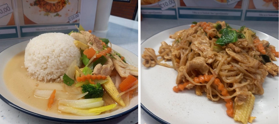 Welcome to The Pasta and Noodle Hut, your go-to destination for a delightful fusion of Asian cuisine in Plymouth. Located at 8 Market Ave, we offer a diverse menu that includes savory Thai dishes, hearty beef soups, and an array of vegetarian and vegan options. Whether you're here for a quick lunch, a leisurely dinner, or a solo bite, our casual atmosphere and friendly service ensure a welcoming experience for everyone, including families. Enjoy convenient delivery or dine-in, and don't forget to try our popular khao soi and creamy spaghetti. Join us for a delightful culinary journey!Patrons rave about the impressive selection of freshly prepared dishes, particularly the authentic wonton noodle soup and the Thai basil stir-fry with beef and crispy pork belly. The cheerful staff receives consistent praise for their friendly and attentive service. Many enjoy the clean environment and the vibrant market setting that enhances the overall dining experience. Customers appreciate the affordability of meals, with an average price point of £10-£20, allowing them to indulge without breaking the bank. The homemade drinks, especially the refreshing apple and ginger concoction, also receive accolades from visitors.