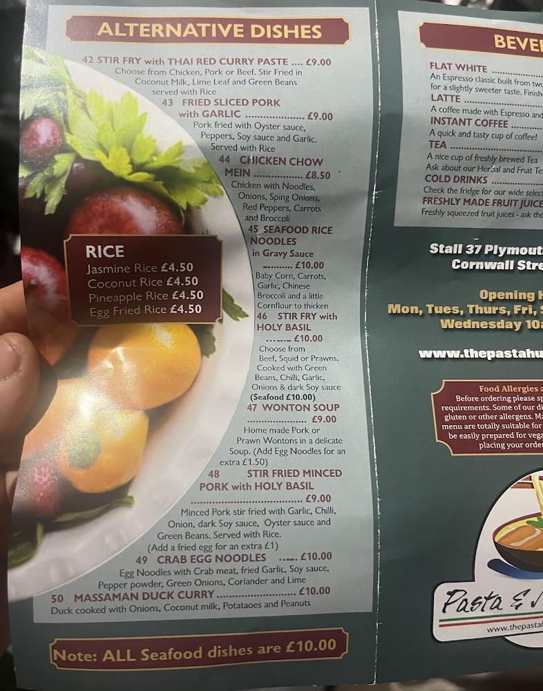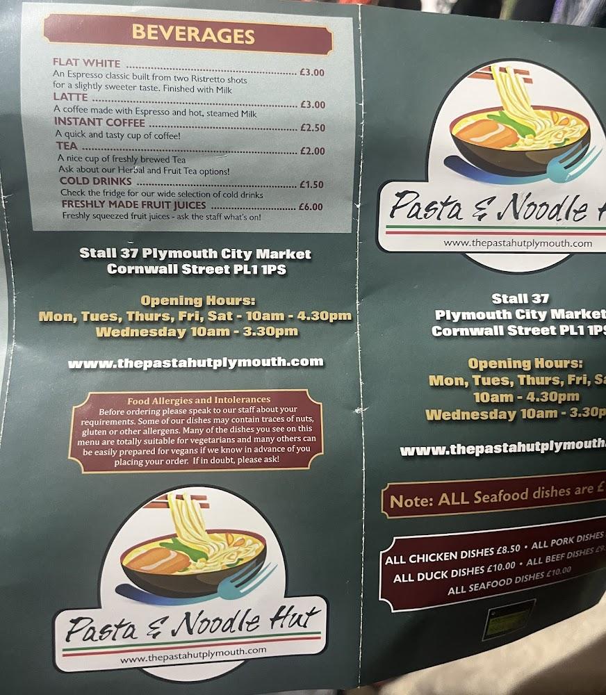 Nestled at 8 Market Avenue in Plymouth, The Pasta and Noodle Hut stands out with its inviting atmosphere and diverse menu. This location is easily accessible, featuring a wheelchair-friendly entrance, making it an inclusive spot for everyone. The restaurant caters to a variety of diners, from solo patrons looking for a quick meal to families enjoying lunch or dinner together. With a crowd that includes groups and tourists, the buzz in the air adds to the dining experience. The Pasta and Noodle Hut offers both dine-in and delivery options, making it convenient for those on the go. And with an exciting mix of dishes—ranging from traditional Thai soups to creative pasta interpretations—this eatery is a treasure trove for food lovers. The warm ambiance reflects the lively market atmosphere, creating an environment where people can connect over great food. Expect your meal to be served with a smile, embodying the friendliness that this location is known for.